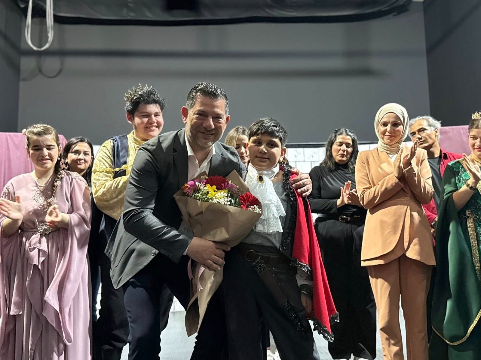 Gecenin sonunda Başkan Kırok, sahne alan oyunculara çiçek ve plaket takdim etti.