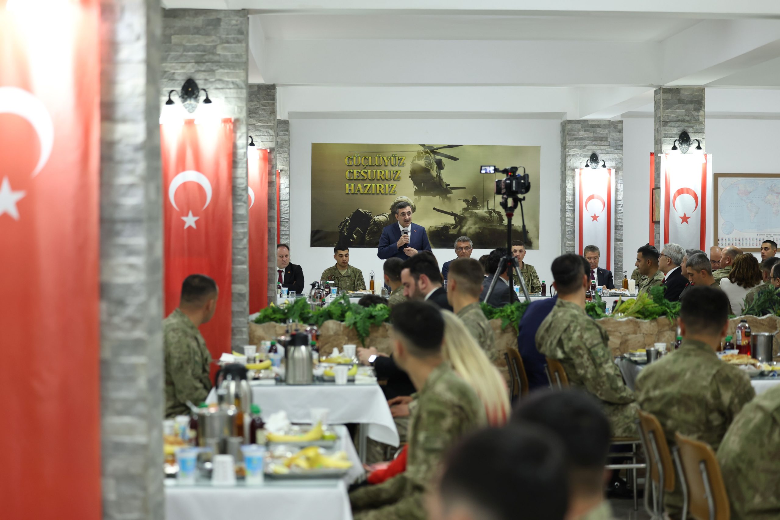 Cumhurbaşkanı Yardımcısı Cevdet Yılmaz (sağ 3), Kuzey Kıbrıs Türk Cumhuriyeti'nde (KKTC) Lefkoşa Eşref Bitlis Kışlası'nda düzenlenen iftar programında Mehmetçik ile bir araya geldi. Cumhurbaşkanı Yardımcısı Yılmaz, programda konuşma yaptı. ( Ahmet Okur - Anadolu Ajansı )
