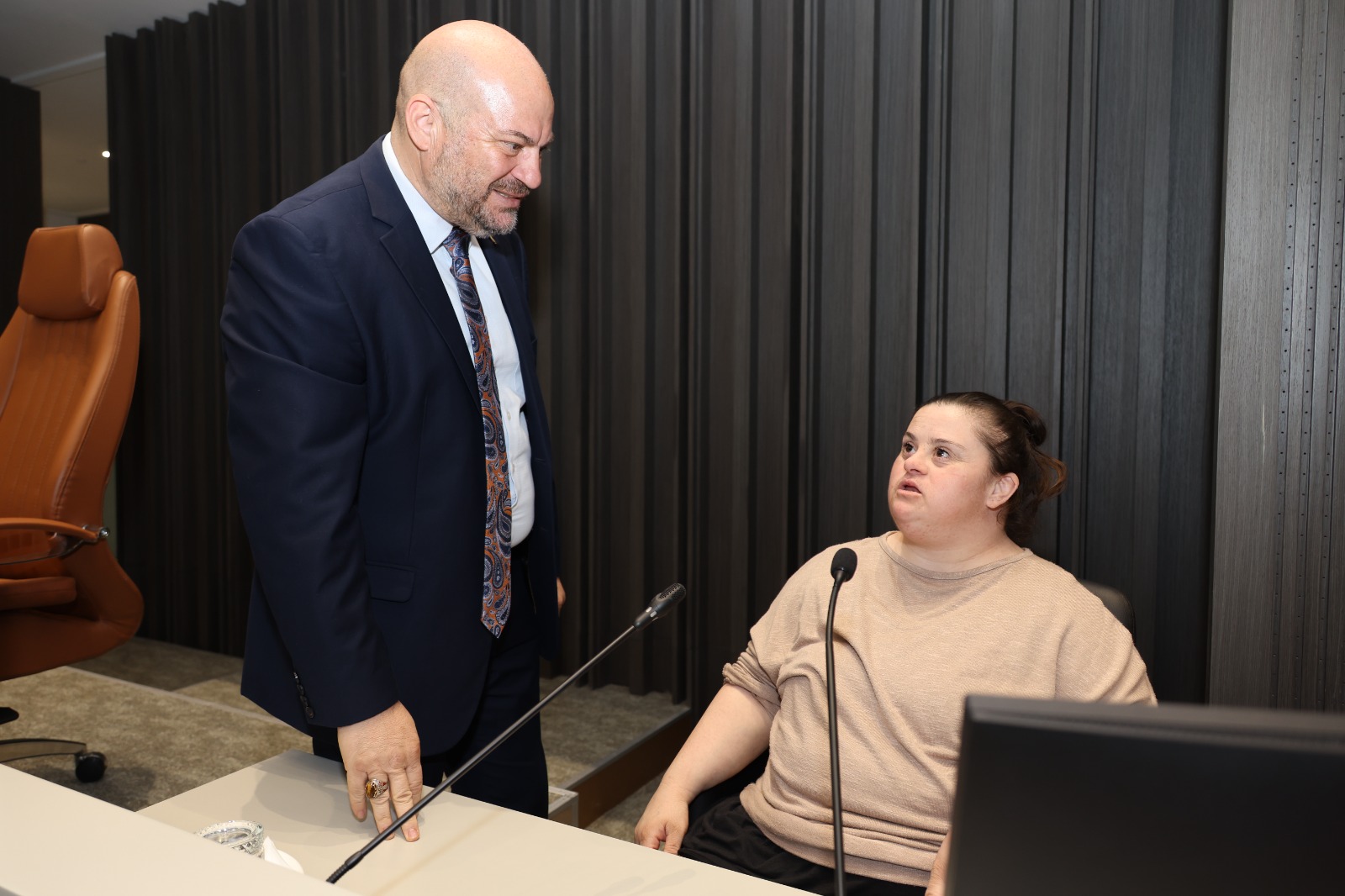 Çalışma ve Sosyal Güvenlik Bakanlığı’na bağlı Sosyal Hizmetler Dairesi Güneşköy, Mağusa İrfan Nadir 18 Yaş Üstü Engelli Rehabilitasyon Merkezi ve Engelsiz Yaşam Evi’ne devam eden down sendromlu gençler, 21 Mart Dünya Down Sendromu Günü dolayısıyla Cumhuriyet Meclisi Genel Kurulu’na katıldı.