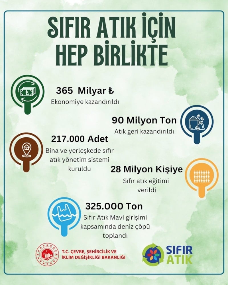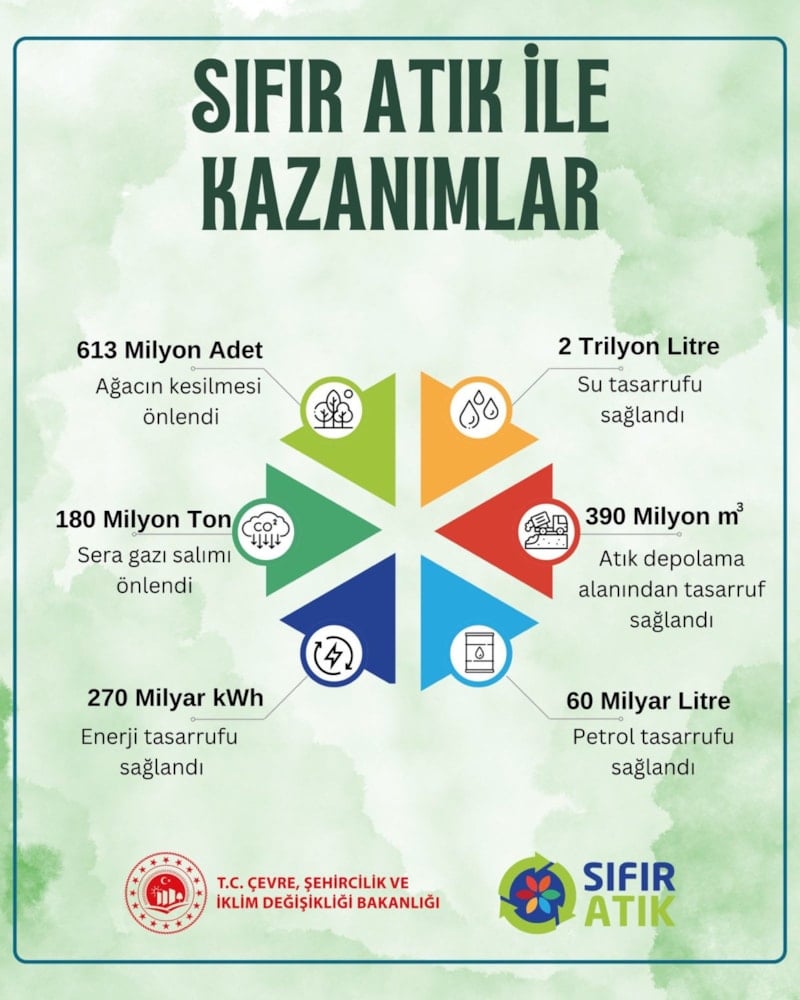Sıfır atık çalışmaları sayesinde 613 milyon adet ağacın kesilmesi önlendi ve 180 milyon ton sera gazı salımının önüne geçilerek iklim değişikliğiyle mücadelede büyük bir adım atıldı.