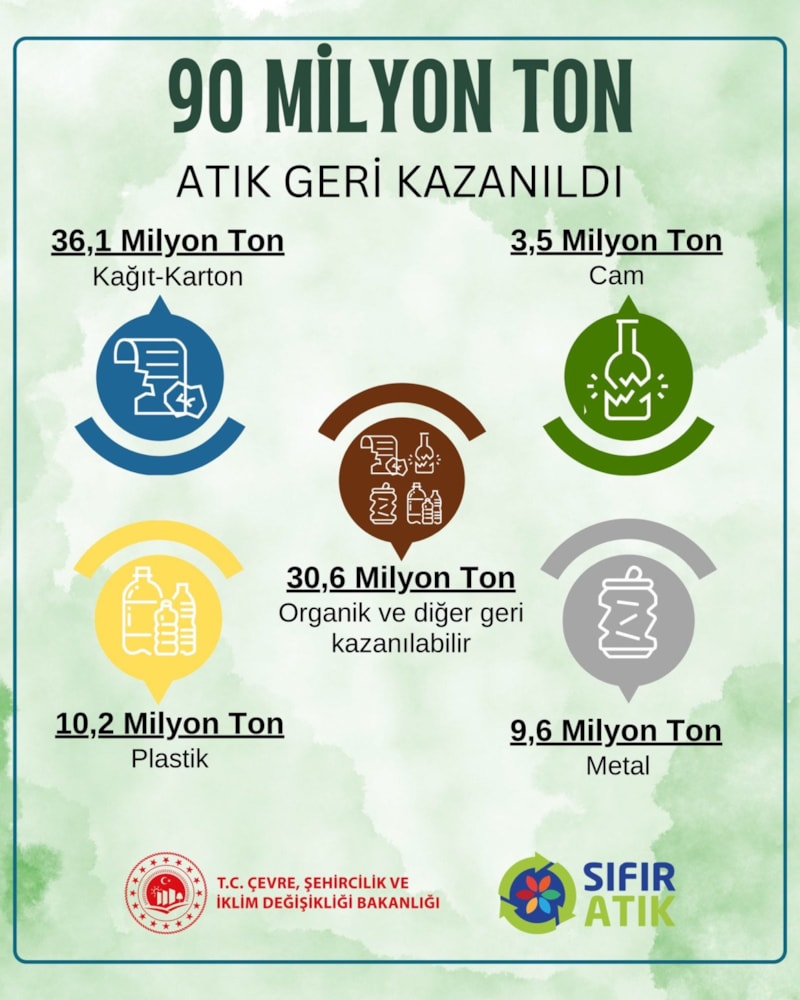 Ülkemizin başlattığı, bugün küresel bir çevre hareketine dönüşen Sıfır Atık Hareketi ile toplamda 90 milyon ton atık geri kazanıldı.