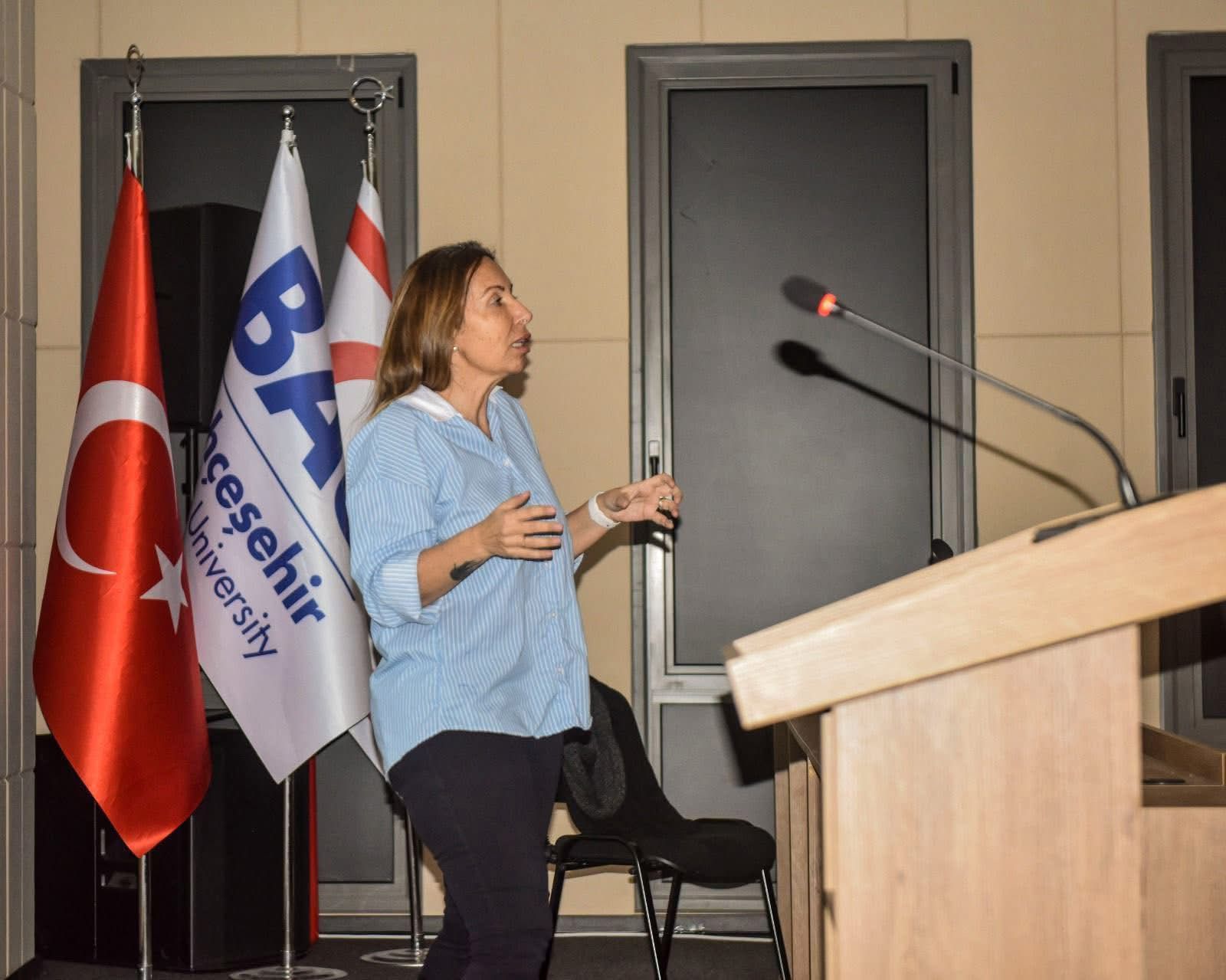 Bahçeşehir Kıbrıs Üniversitesi Konferans Salonu’nda düzenlenen seminerde bu kez “Çocuk İstismarları, Zorbalık ve Aile” konusu ele alındı. Klinik Sağlık Psikolojisi, Evlilik ve Aile Terapisti Yrd. Doç. Dr. Linda Fraim, ailelerin çocuklarıyla kurduğu iletişim, akran zorbalığıyla mücadele ve çocukların güvenli gelişimi konularında velilere önemli bilgiler paylaştı.
