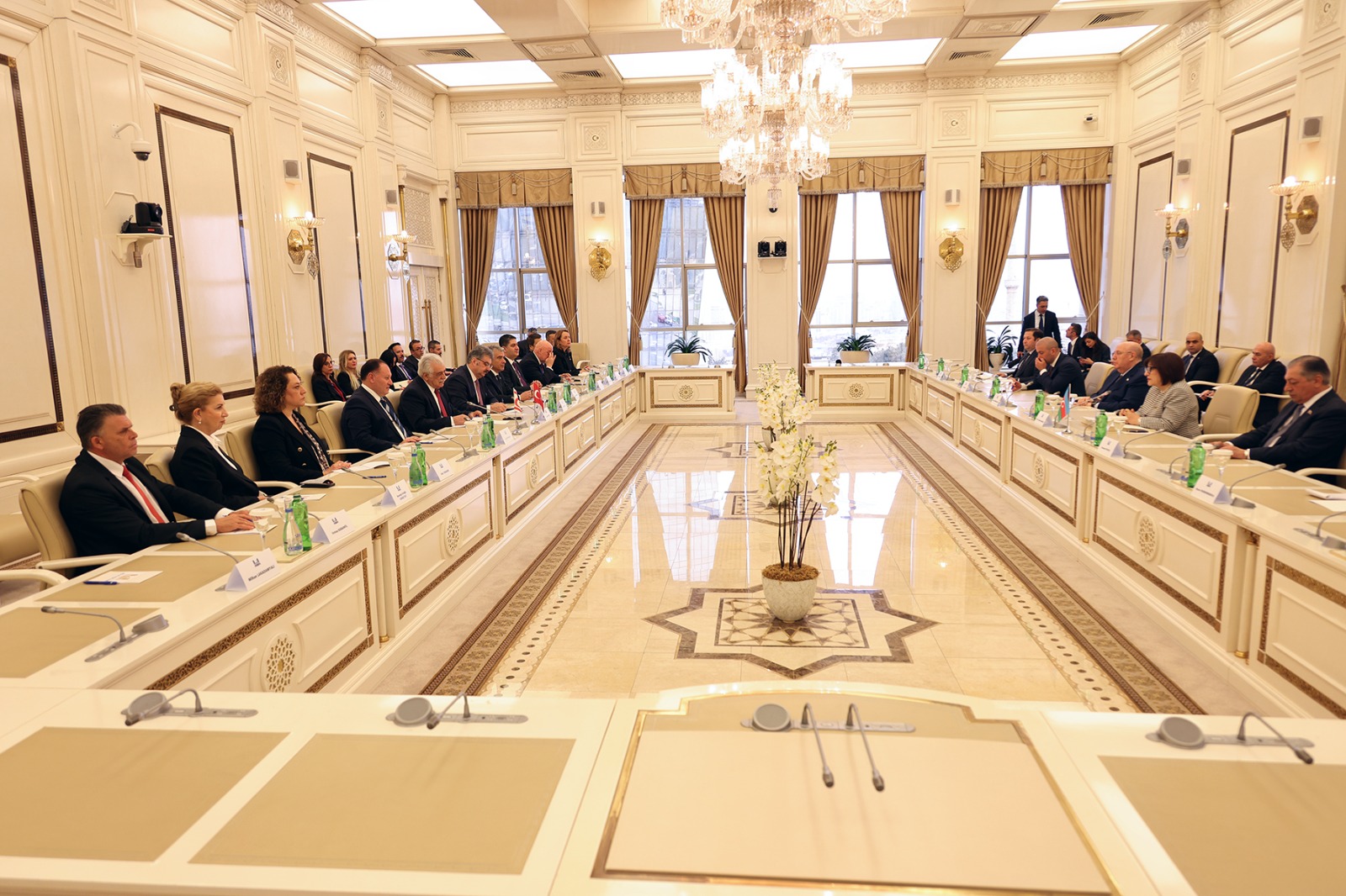 Azerbaycan Milli Meclisi İstiklal Salonu’nda gerçekleşen görüşme ile ilgili değerlendirmede bulunan Azerbaycan Cumhuriyeti Millî Meclisi Başkanı Sahibe Gafarova, Azerbaycan ile Kuzey Kıbrıs Türk Cumhuriyeti arasındaki dostluk ve kardeşlik bağlarının somut bir tezahürü olarak bugün KKTC’de bulunan heyetleri görmekten duyduğu memnuniyeti dile getirdi.
