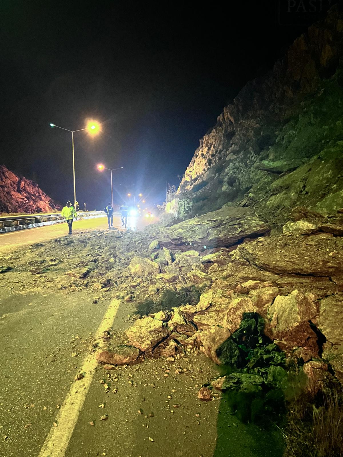 Lefkoşa - Girne Anayolunun Darboğaz Mevkiinde (St Hilarion Kavşağı yakınları) yola kaya parçaları düştü.